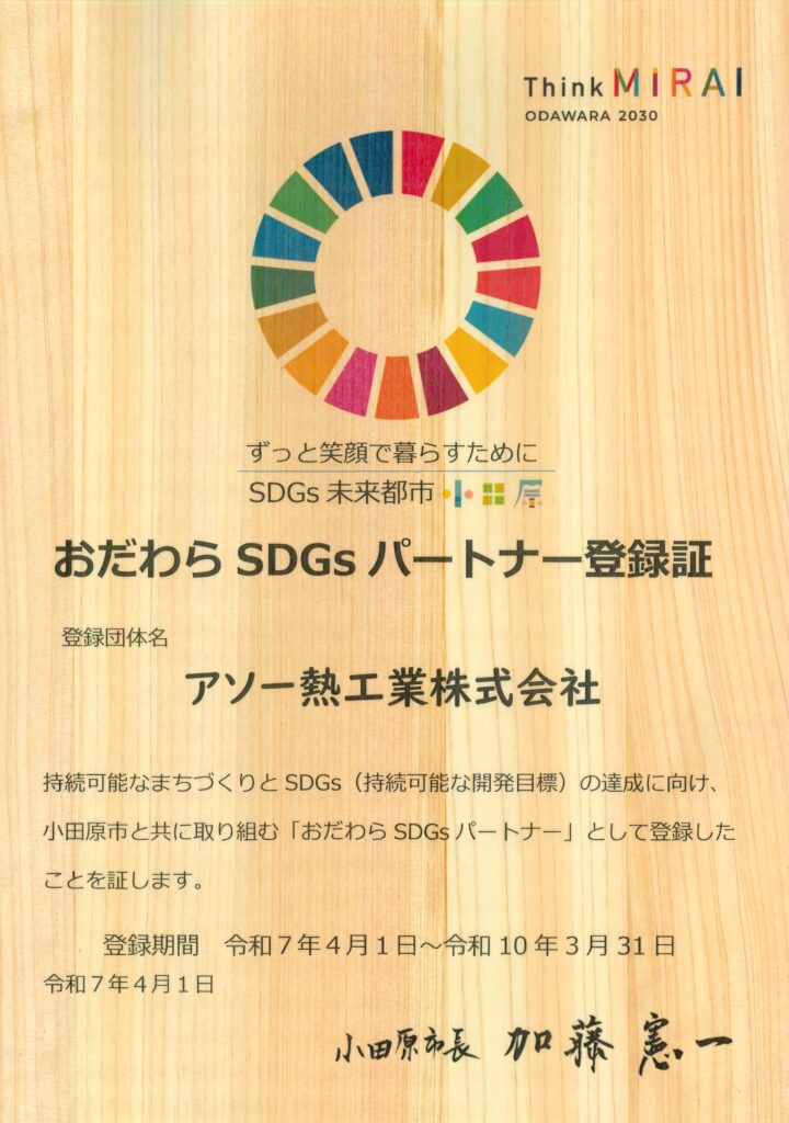 かねてより、SDGs目標達成に向けた活動をしておりましたが、おだわらSDGsパートナーの一員として活動を継続していくことをご報告いたします。